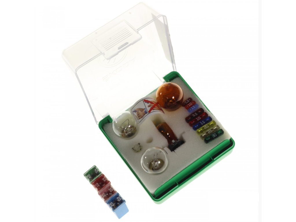 Zestaw zawiera wszystkie zapasowe żarówki niezbędne do zapewnienia oświetlenia zewnętrznego samochodu.